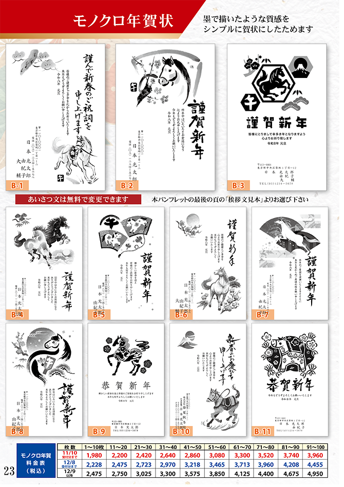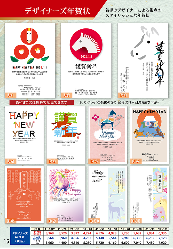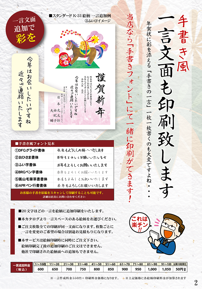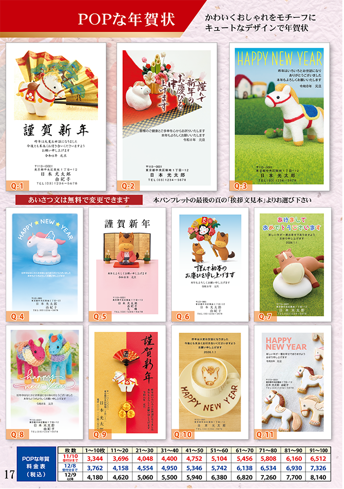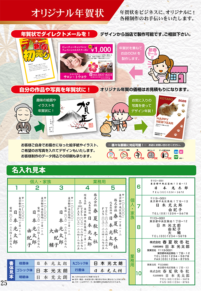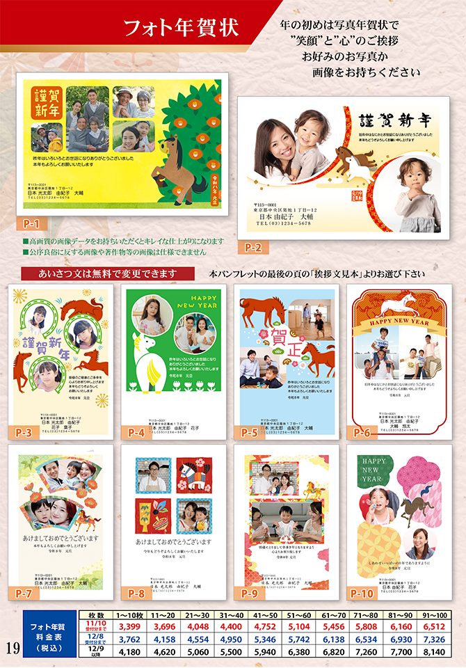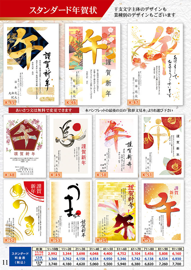 ◆自由挨拶文やロゴ入れ年賀状も作成できます!