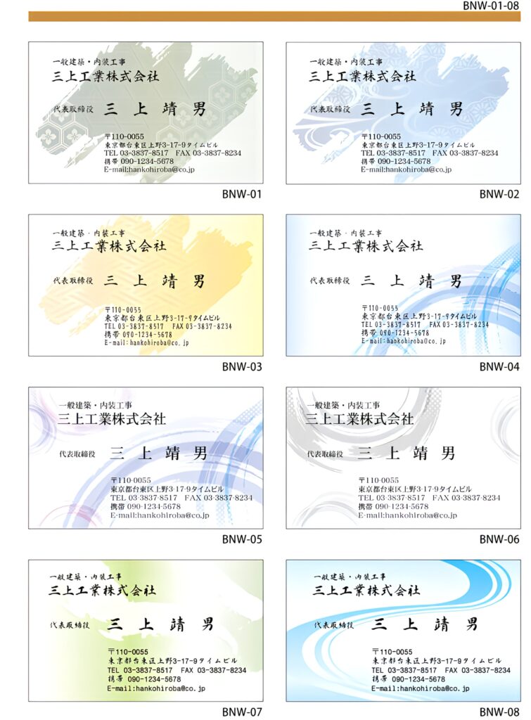 どのデザインも同一料金にてお客様の会社のデザインとして利用可能です。