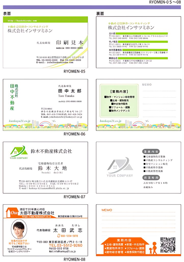一般的なビジネス用名刺から、それぞれの職種に見合った高級名刺など