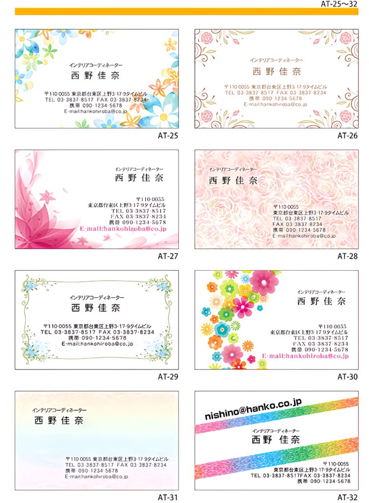 当店でご用意しているデザインテンプレートの一例になります。